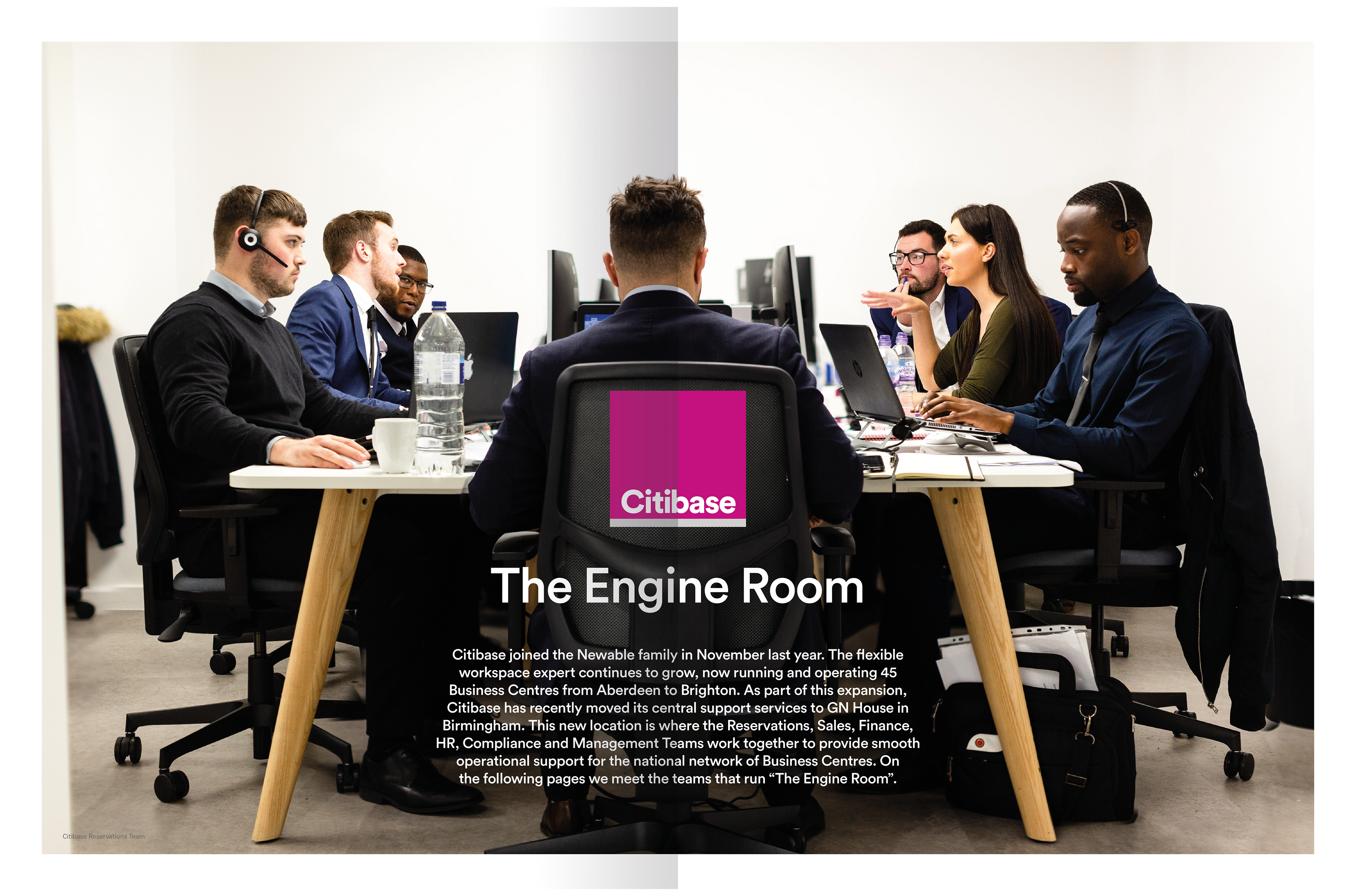 Reportage shots of staff at 'The Engine Room', the headquarters of Birmingham based flexible office specialists Citibase.