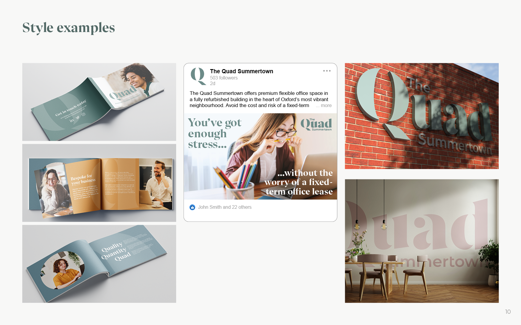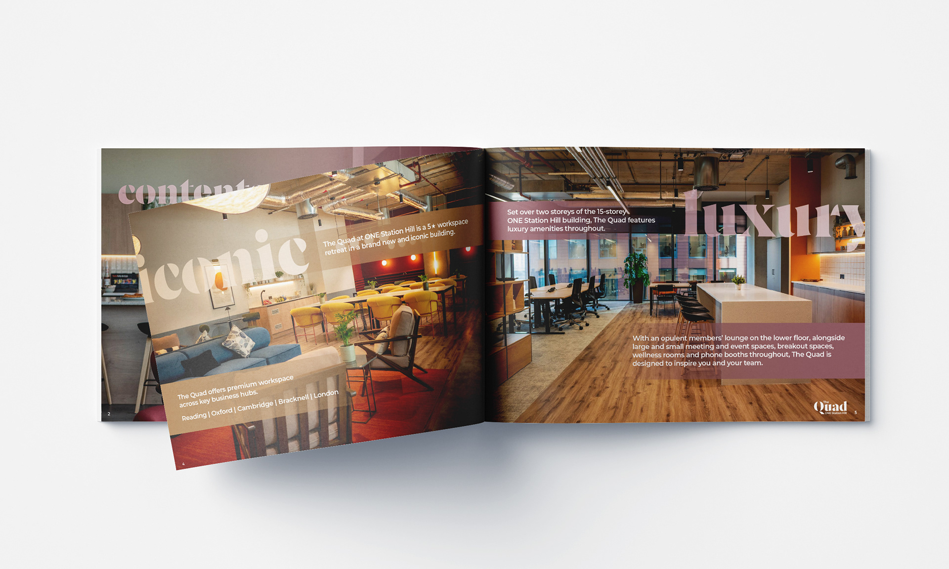NewFlex, a UK-wide flexible office space provider, commissioned me to create branding for its new premium offering. The Quad initially opened in Summertown Oxford. As of 2025 has spaces in four UK locations.